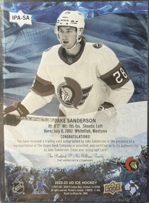 Jake Sanderson Ice Premieres Rookie Auto /199