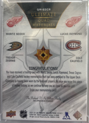 Seider Raymond Zegras Caufield RC Jersey /49