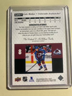 Cale Makar 21-22 Upper Deck Series 1 25th Anniversary Achievement Game Jersey