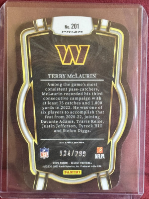 2022 Panini Select Terry McLaurin #201 Green Die-Cut Prizm #/299