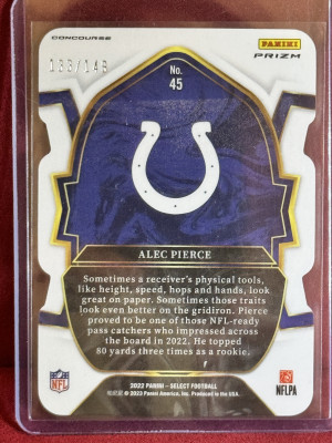 2022 Panini Select Alec Pierce #45 Rookie Copper Die-Cut Concourse Prizm #/149