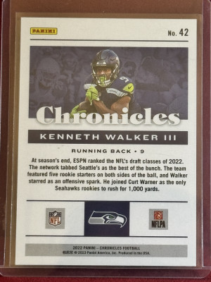 2022 Panini Chronicles Kenneth Walker III #42 Red RC #/199