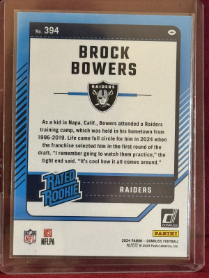 2024 Panini Donruss Brock Bowers #394 Green Press Proof Rated Rookie