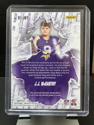 2024 Panini Absolute J.J. McCarthy #RF-JMY Rookie Force Patch