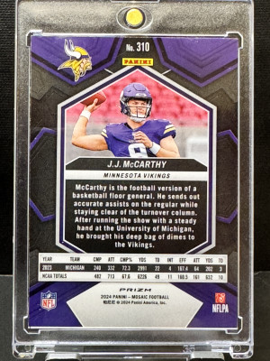 2024 Panini Mosaic J.J. McCarthy #310 Green Mosaic Prizm RC