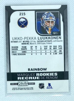 2021-22 OPC Platinum Ukko-Pekka Luukkonen Rainbow Marquee Rookies #215