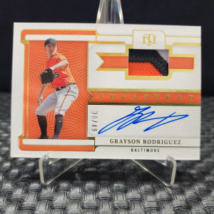 2023 Panini National Treasures - Rookie Material Signatures Grayson Rodriguez /49 (AU, MEM, RC) Tri color Patch