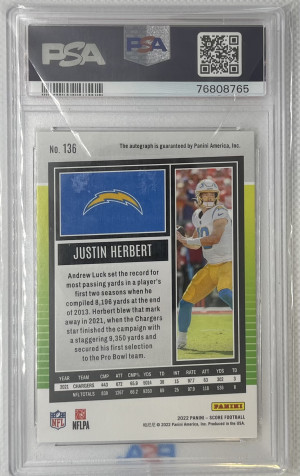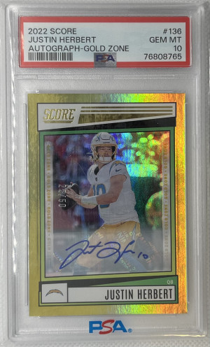 2022 Score Justin Herbert gold /50 auto PSA 10