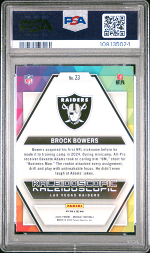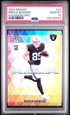 Brock Bowers 2024 Mosaic Rookie Kaleidoscopic Prizm SSP Case Hit #23 PSA 10