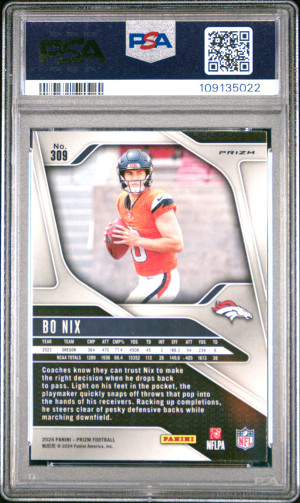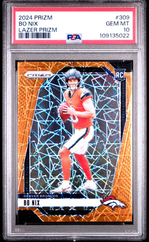 Bo Nix 2024 Panini Prizm Orange Lazer Prizm #309 Rookie RC PSA 10