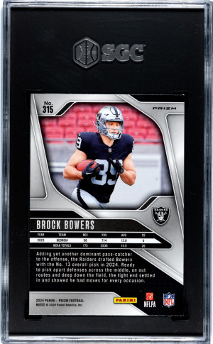 2024 Panini Prizm Brock Bowers #315 Neon Green Pulsar Rookie Raiders SGC 10