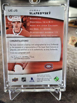 2022-23 Upper Deck Ultimate Juraj Slafkovsky Rookie Auto Gold /25