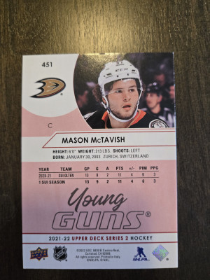 2021-22 Upper Deck Young Guns Exclusives Mason McTavish /100 #451 Anaheim