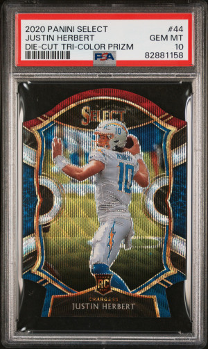 2020 Panini Select Justin Herbert Die-Cut Tri-Color Prizm