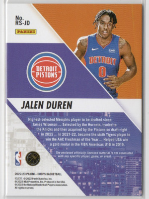 2022-23 Panini NBA Hoops Jalen Duren #RS-JD RC Memorabilia