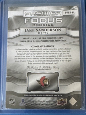 2022-23 Premier - Jake Sanderson - Premier Focus /49 - RPA