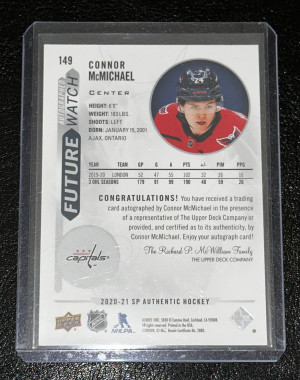 2020-21 SP Authentic Rookie Connor McMichael Future Watch Auto RC /999