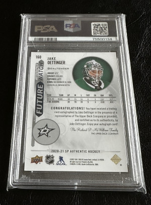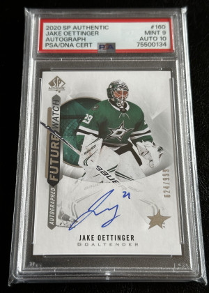 2020-21 SP Authentic Rookie Jake Oettinger Future Watch Auto RC /999 PSA 9 FWA