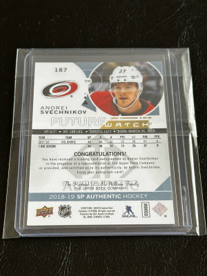 2018-19 SP Authentic Andrei Svechnikov Future Watch Auto RC /999 #187