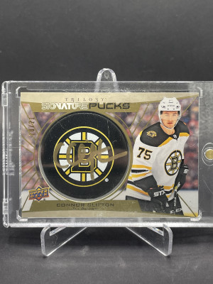 2020-21 UD Trilogy Gold Signature Pucks Connor Clifton Rookie Auto /21