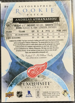 Andreas Atthanasiou Exquisite True Rookie Patch Autograph /72