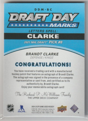 2024-25 SP Game Used Draft Day Marks Brandt Clarke