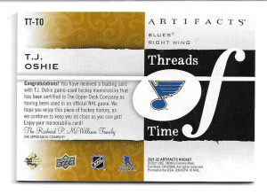 2021-22 Artifacts Threads of Time #TTTO T.J. Oshie - St. Louis Blues