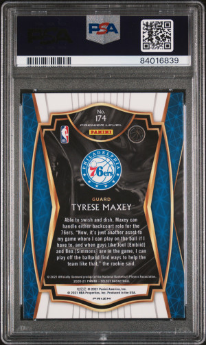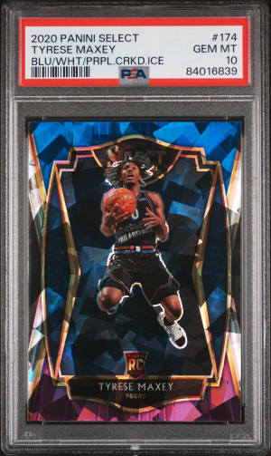 2020 Panini Select Tyrese Maxey #174 Blue White & Purple Cracked Ice Prizm Premier Level Rookie RC Gem Mint PSA 10