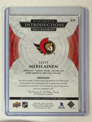 2023-24 Ultimate Leevi Merilainen Ultimate Introductions Rookie Auto