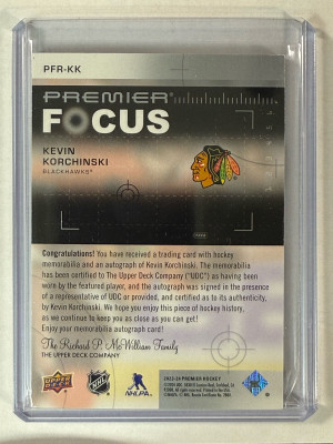 2023-24 Premier Kevin Korchinski Premier Focus Patch Auto #/175