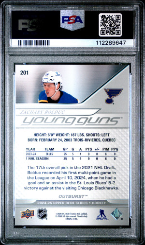 2024 Upper Deck Zachary Bolduc Outburst Young Guns Silver