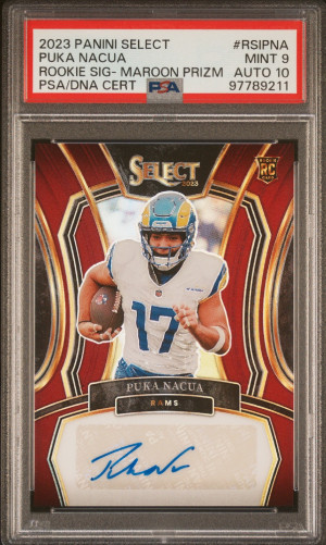 2023 Select Football Puka Nacua Maroon Rookie Auto /75 PSA 9 Auto 10