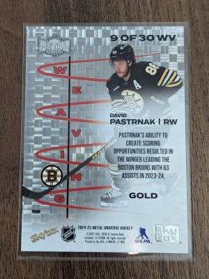 David Pastrnak 8/10 gold parallel weaving Boston Bruins 2024-25 metal universe