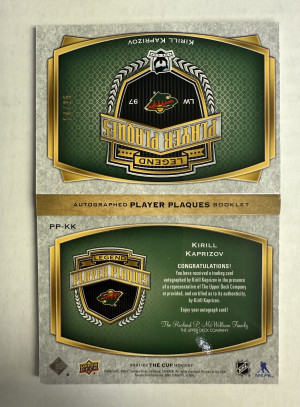 2021-22 The Cup Kirill Kaprizov Auto Player Plaque Booklet #/25