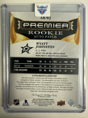2022-23 Premier Wyatt Johnston Rookie Auto Patch #51/99