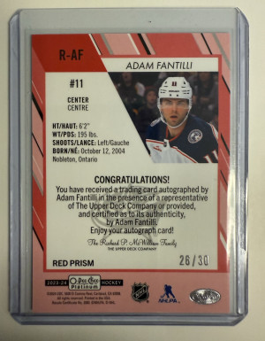 2023-24 OPC Platinum Adam Fantilli Red Prism Auto #26/30