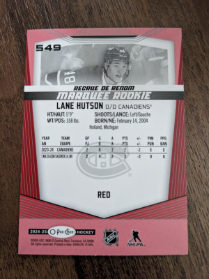 Lane Hutson 2024-25 OPC red parallel O-pee-chee marquee rookie
