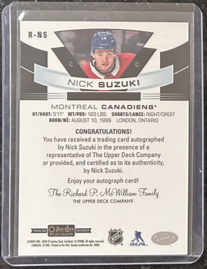 2019 Nick Suzuki OPC Platinum Rookie Autos