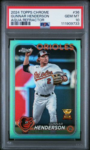 2024 Topps Chrome Gunnar Henderson Aqua Refractor /199 PSA 10 Gem