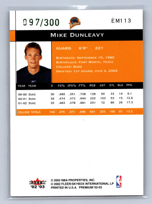 2002-03 Fleer Premium Prospects Mike Dunleavy Emerald /300 #EM113