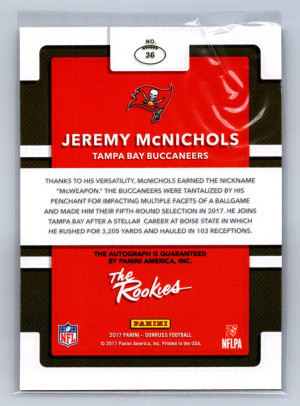 2017 Panini Donruss The Rookies Jeremy McNichols Auto /499 #TR-36