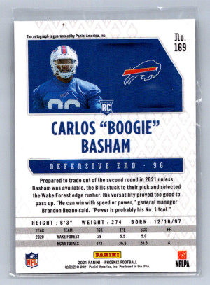 2021 Panini Phoenix Carlos "Boogie" Basham Silver Auto #169