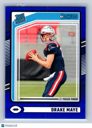 2024 Panini Donruss Rated Rookie Drake Maye Press Proof Blue #379