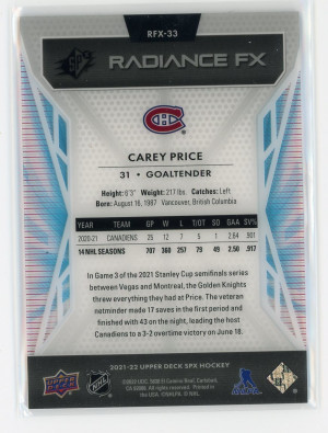 2021-22 SPx #RFX-33 Carey Price Radiance F/X Gold 42/50 ***see details***