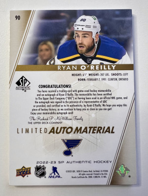 2022-23 SP Authentic Ryan O'Reilly 075/100 Patch