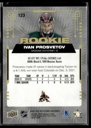 Ivan Prosvetov 192/399 Rookie Upper Deck Stature 2021-22 #123