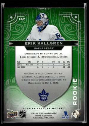 Erik Kallgren 50/66 Rookie Upper Deck Stature Photo Variant Green 2022-23 #147