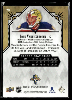 John Vanbiesbrouck Upper Deck Stature 2020-21 #78