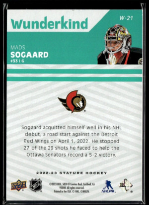 Mads Sogaard 082/150 Rookie Upper Deck Stature Wunderkind Green 2022-23 #W-21