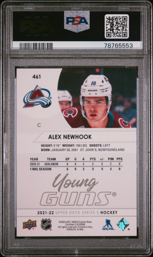 2021-22 Upper Deck Series 2 Alex Newhook Young Guns PSA 10